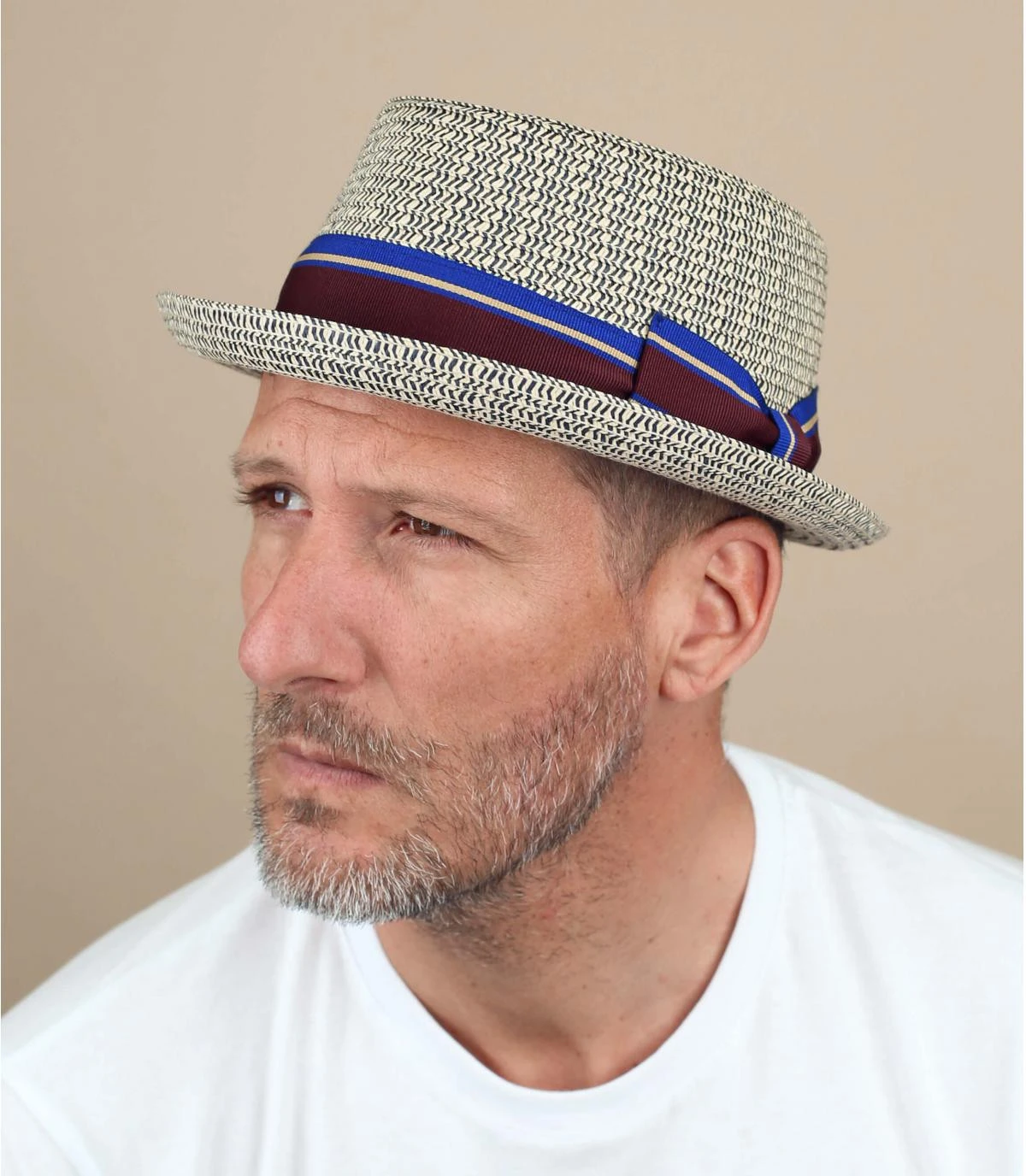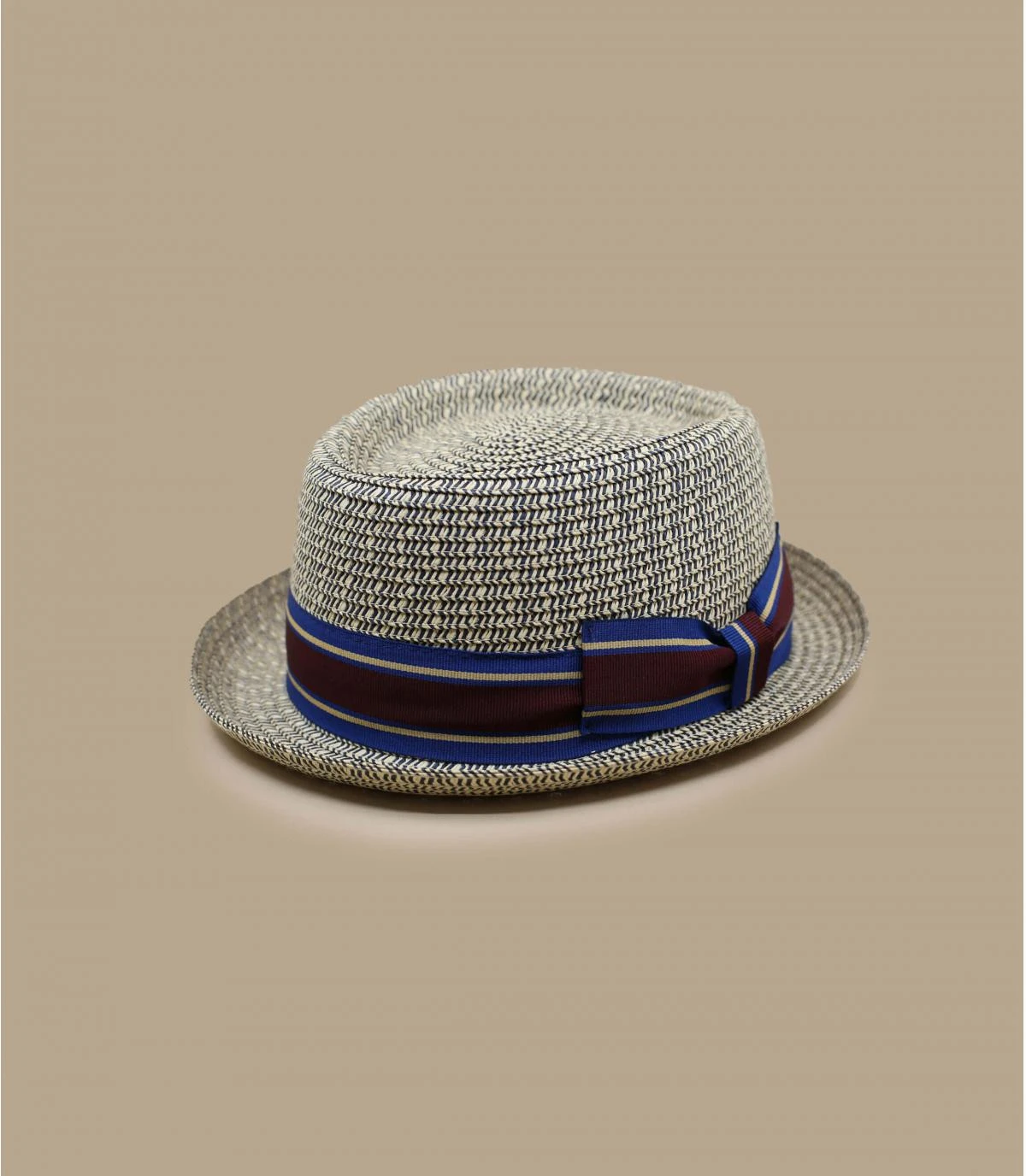 Donnez une allure Ă©lĂ©gante Ă vos tenues cet Ă©tĂ©, avec ce charmant chapeau de paille Ă bord court et relevĂ© type pork pie. De couleur bleu marine, il est dĂ©corĂ© dâun ravissant galon Ă rayures assorti, avec un grand nĆud plat sur le cĂŽtĂ©.