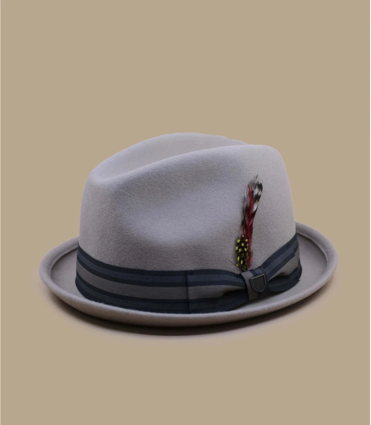 De coloris beige clair, ce chapeau est l’accessoire ultime pour compléter votre tenue rétro ou branchée. Il peut vous protéger de la pluie et du vent. Le bandeau coloré et la plume sont très chics.